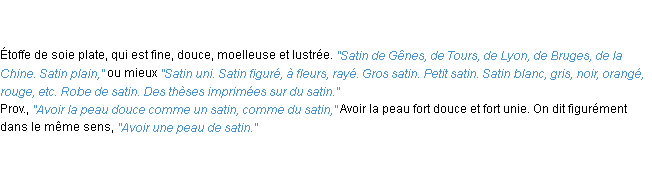 Signification parue en 2009 (source la-definition.fr).Merci à Bénédicte et Joséphine pour la numérisation du mot satin.