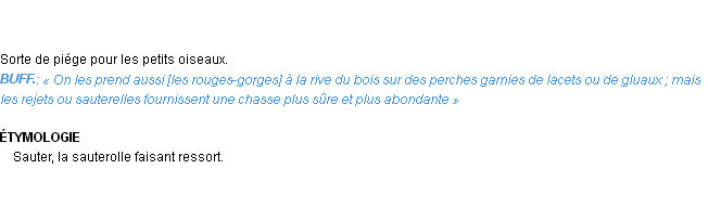 Signification du terme « sauterolle ou sauterelle », parution de 1876 (dictionnaire le Littré).