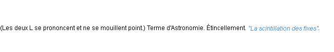Signification du terme « scintillation », parution de 1876 (dictionnaire le Littré).Merci à Blaise et Antoine pour la numérisation du mot scintillation.