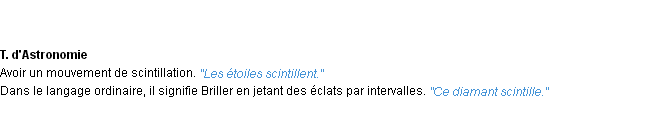 Signification parue en 2009 (source la-definition.fr).Merci à Amélie et Faustine pour la numérisation du mot scintiller.