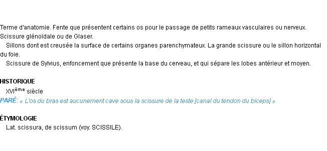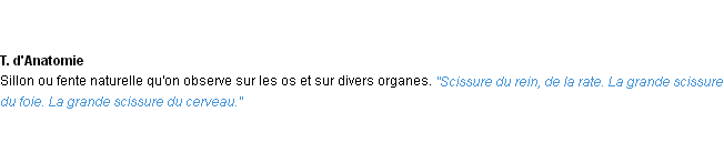 Signification éditée en 1876 pour le terme « scissure » par Emile Littré.