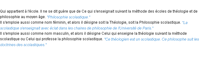 Définition académique pour le terme « scolastique » (parue en 1932).