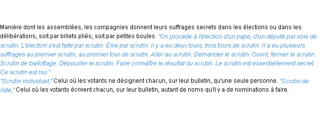 Signification parue en 2009 (source la-definition.fr).Merci à Jolie et Perceval pour la numérisation du mot scrutin.