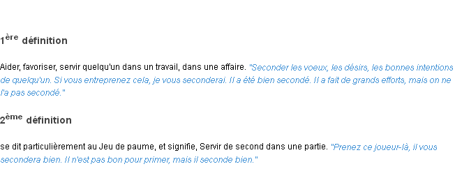 Définition du mot « seconder » par l’Académie Française (édition de 1932).