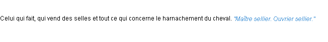 Signification parue en 2009 (source la-definition.fr).Merci à Manon et Luce pour la numérisation du mot sellier.