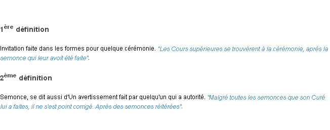 Définition développée dans dictionnaire de Jean-François Féraud (ancienne édition de 1788).Merci à élise et Guillaume pour la numérisation du mot semonce.