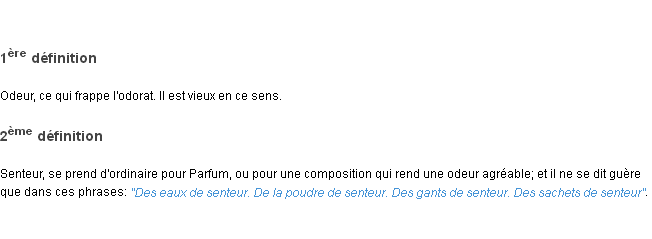 Signification éditée en 1932 pour le terme « senteur » par l’Académie Française.