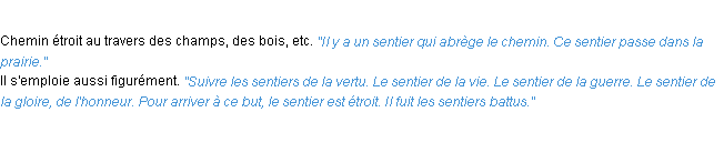 Ancienne définition académique pour le terme « sentier » (parue en 1835).