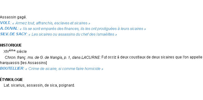 Définition du mot « sicaire » par Emile Littré (édition de 1876).