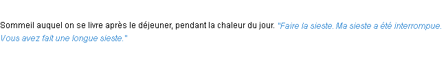 Définition de « sieste » issue du Littré (Auteur Emile Littré, édité en 1876).