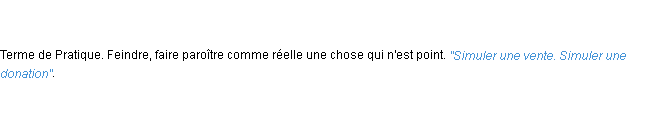 Définition de « simuler » de source académique (Académie Française, parution de 1932).