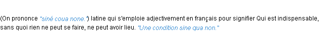Signification développée en 1876 par Mr Littré (dictionnaire dit d’Emile Littré).Merci à Pascaline et Jeannette pour la numérisation du mot sine qua non.