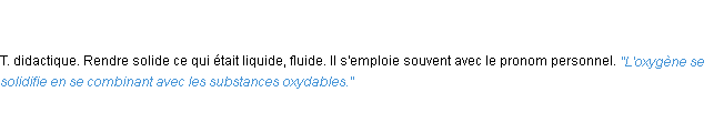 Définition issue du dictionnaire wiktionary pour le mot « solidifier ».Merci à Armel et Josée pour la numérisation du mot solidifier.