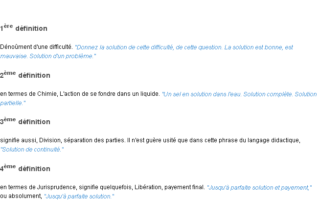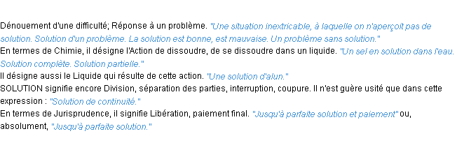 Signification du terme « solution », parution de 1932, dictionnaire académique Français.