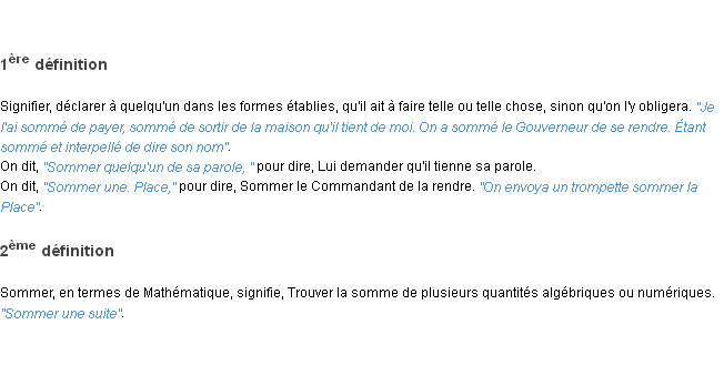 Définition du mot « sommer » par l’Académie Française (édition de 1932).