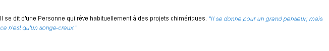 Définition de l’Académie Française (édition de 1932) pour le mot « songe-creux ».