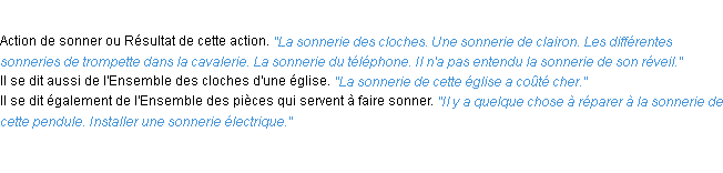 Signification éditée en 2010 par l’équipe de la-definition.fr.Merci à Gaetane et Edwige pour la numérisation du mot sonnerie.