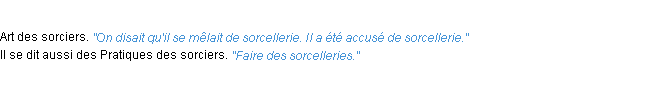 Signification parue en 2009 (source la-definition.fr).Merci à Léa et Antoine pour la numérisation du mot sorcellerie.