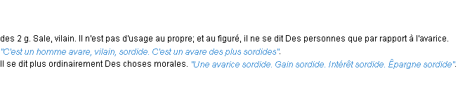 Ancienne définition « sordide » du dictionnaire académique Français, parution de l’année 1798.