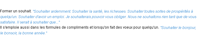 Ancienne définition de « souhaiter » de source académique (Académie Française, parution de 1798).