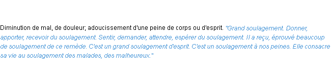 Signification parue en 2009 (source la-definition.fr).Merci à Dominique et émilien pour la numérisation du mot soulagement.