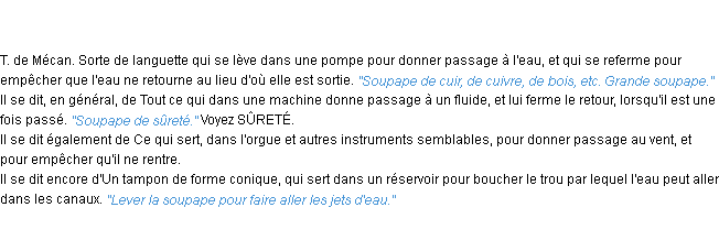 Signification du terme « soupape », parution de 1932, dictionnaire académique Français.