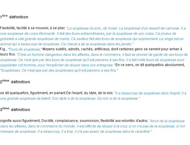 Définition académique pour le terme « souplesse » (parue en 1932).