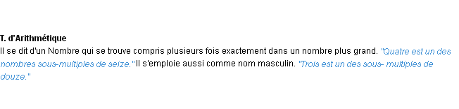 Définition du mot « sous-multiple » par Emile Littré (édition de 1876).Merci à Aurore et Manon pour la numérisation du mot sous-multiple.