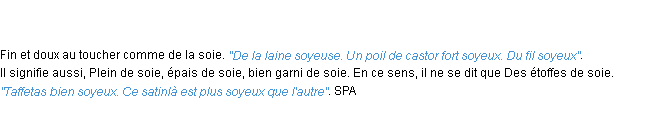 Ancienne définition « soyeux » du dictionnaire académique Français, parution de l’année 1835.
