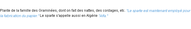 Définition développée dans dictionnaire d’Emile Littré (ancienne édition de 1876).Merci à Luc et Micheline pour la numérisation du mot sparte.