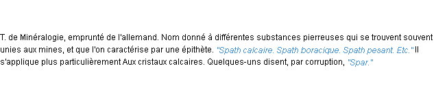 Ancienne définition académique pour le terme « spath » (parue en 1835).