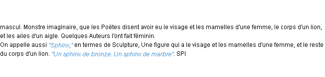 Ancienne définition académique pour le terme « sphinx » (parue en 1835).