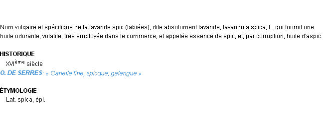 Signification éditée en 1876 pour le terme « spic » par Emile Littré.