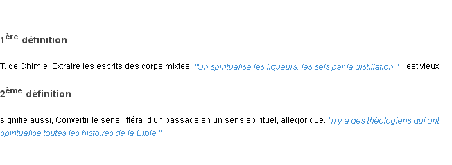 Signification du terme « spiritualiser », parution de 1876 (dictionnaire le Littré).Merci à Aristide et Honoré pour la numérisation du mot spiritualiser.