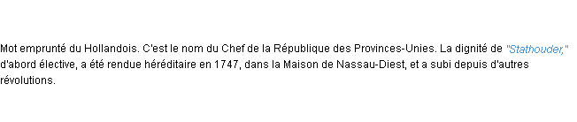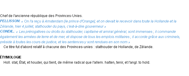 Définition développée dans dictionnaire d’Emile Littré (ancienne édition de 1876).Merci à Bernadette et Josiane pour la numérisation du mot stathouder.