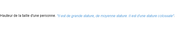 Signification éditée en 2010 par l’équipe de la-definition.fr.Merci à Amaury et Germain pour la numérisation du mot stature.
