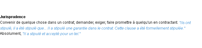 Ancienne signification éditée en 1798 pour le terme « stipuler » par l’Académie Française.