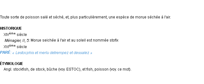 Signification développée en 1876 par Mr Littré (dictionnaire dit d’Emile Littré).Merci à Hilaire et Maximilien pour la numérisation du mot stockfisch.