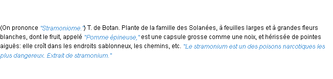 Définition du mot « stramonium » par Emile Littré (édition de 1876).Merci à Céleste et Sylvaine pour la numérisation du mot stramonium.