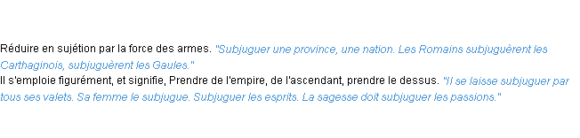 Ancienne définition académique pour le terme « subjuguer » (parue en 1835).