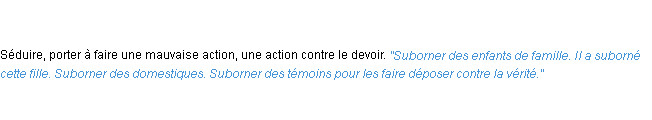 Signification parue en 2009 (source la-definition.fr).Merci à Olivie et éloise pour la numérisation du mot suborner.