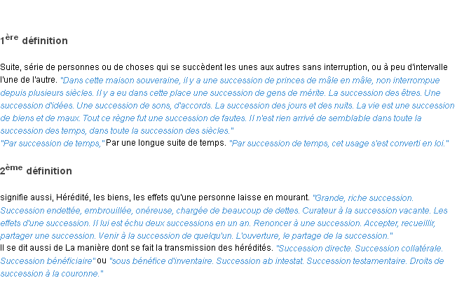Définition du mot « succession » par l’Académie Française (édition de 1932).