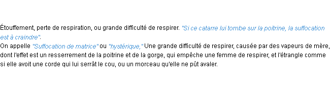 Signification éditée en 1932 pour le terme « suffocation » par l’Académie Française.