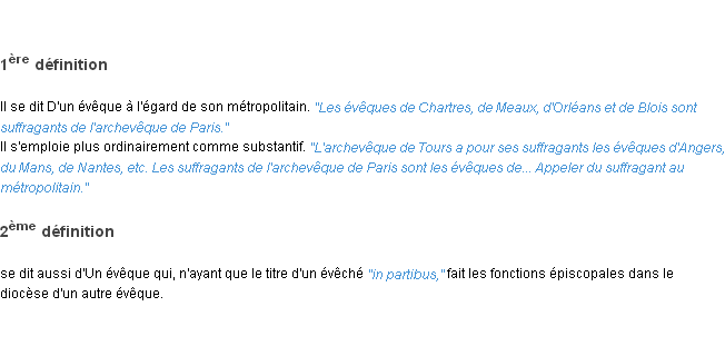 Définition issue du dictionnaire wiktionary pour le mot « suffragant ».Merci à Julien et Renaud pour la numérisation du mot suffragant.