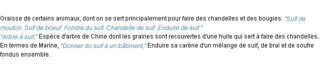 Ancienne signification éditée en 1798 pour le terme « suif » par l’Académie Française.