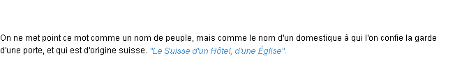 Ancienne signification éditée en 1798 pour le terme « suisse » par l’Académie Française.