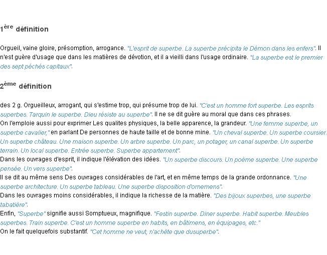 Définition de l’Académie Française (édition de 1932) pour le mot « superbe ».