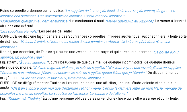 Signification éditée en 1932 pour le terme « supplice » par l’Académie Française.