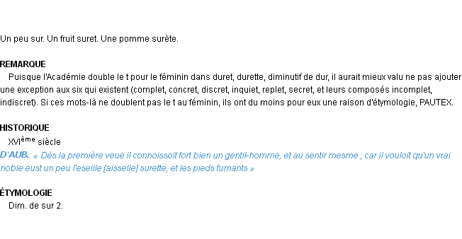 Définition de l’Académie Française (édition de 1932) pour le mot « suret ».