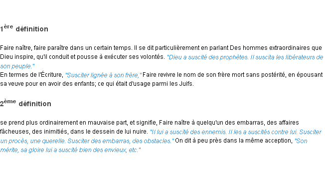 Ancienne signification éditée en 1835 pour le terme « susciter » par l’Académie Française.